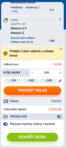Postup u sázky s expresní je velmi podobný předchozímu postupu u jednoduché sázky. Stačí k aktuálnímu tiketu přidat další sázky, které se kumulují.